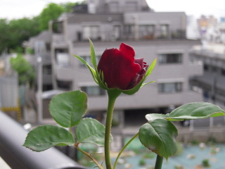 奥のプリンスと比べると少し明るめの赤い薔薇です。