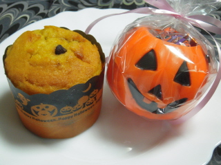写真のマフィンはミセスエリザベスマフィンのかぼちゃとチョコのマフィン。