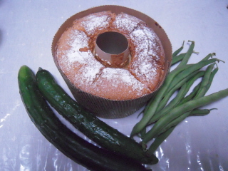 皆で食べて、写真の野菜とシフォンケーキを持って帰って来ました。
