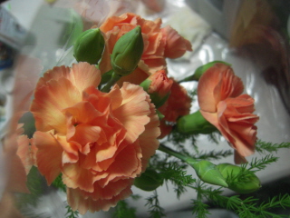 オレンジ色のカーネーションを買って来てくれました。