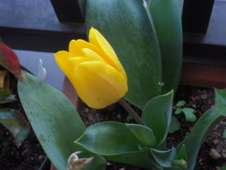 去年のチューリップの球根を駄目もとで植えたら咲きました。