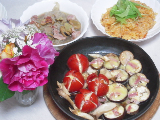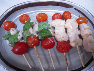 沢山収穫した日は鶏のささみと串に刺して焼いてみました。