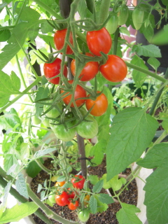 ミニトマトのアイコがたわわに実っています。